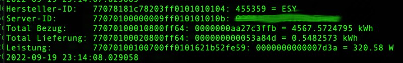 # Total Bezug: 77070100010800ff64: 00000000000011d9 = 0.0004569 kWh